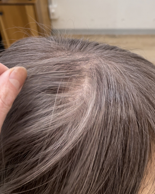 (↑白髪率80% 限りなく淡く白髪を染めています)